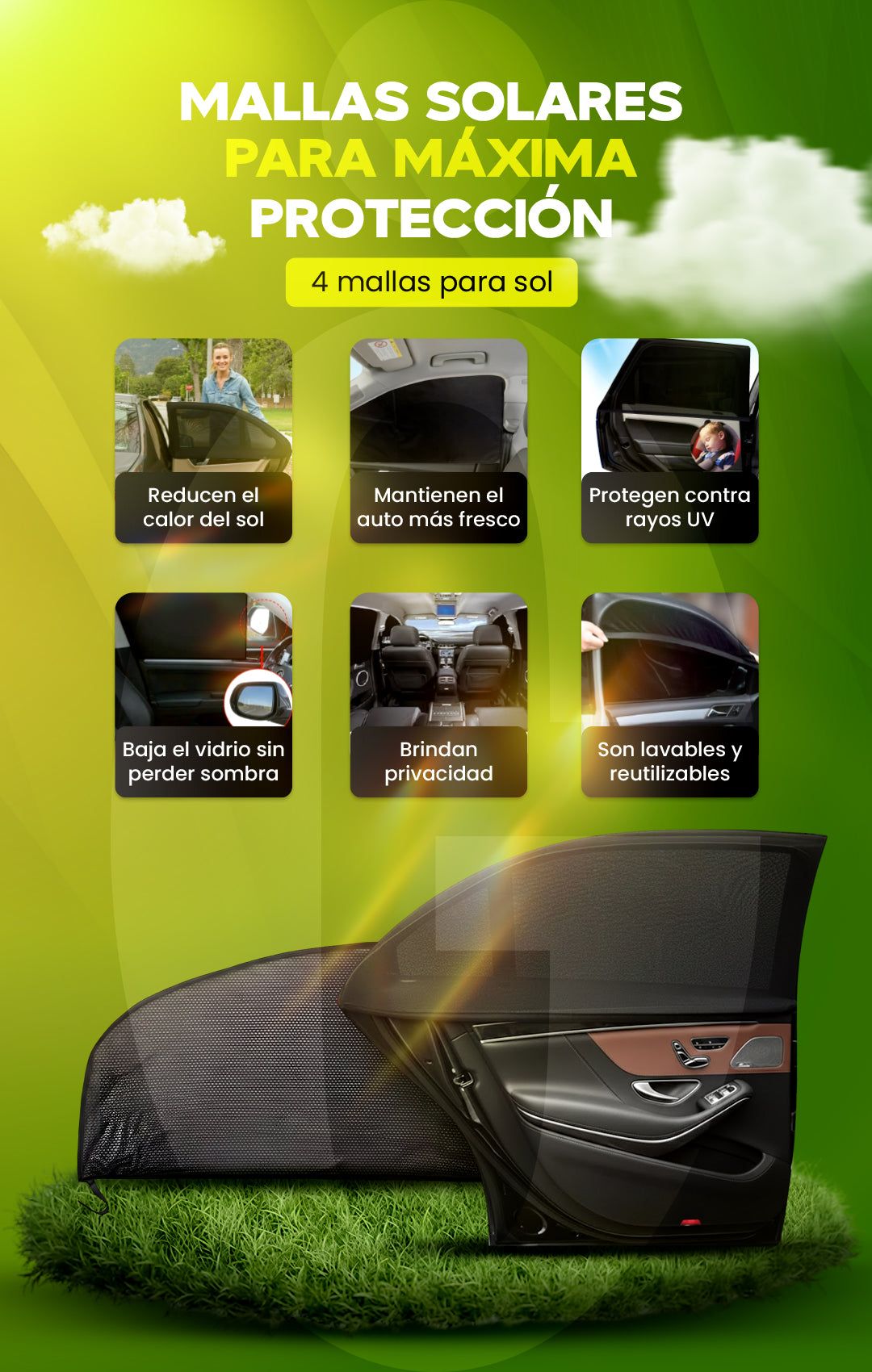 Evita el calor y el efecto dañino del sol. Protege tu piel, tus ojos y tu carro.